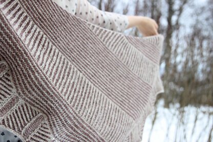 Haiku is a diagonally worked triangle shawl with alternating garter stitch and brioche stripes. The edge has an interesting but easy chevron pattern worked in two-colored brioche.