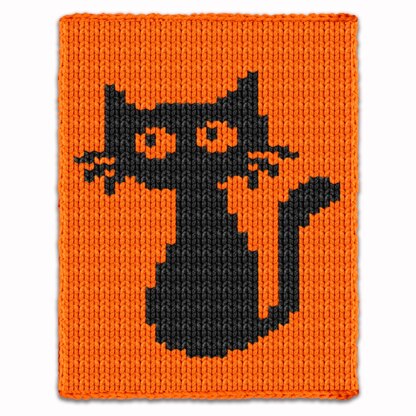 Finger Knitting Pattern PDF – Black Cat Knit Blanket is a festive Orange design perfect for the Halloween holidays. Worked in stockinette stitch, this cheerful project makes a cozy bulky jumbo #7 yarn super chunky crib throw, afghan, or Halloween blanket for a newborn, baby, toddler, or child. Knit it using the included colorwork Cat chart, row-by-row written instructions, or easy color blocks — beginner-friendly and ideal for cozy finger knitting!