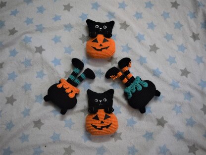 The Witch and Cauldron is 14 cm in length The Cat and pumpkin is 12 cm in height