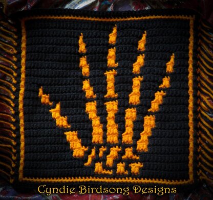 This pattern is for an overlay mosaic crochet square featuring charts for both the right & left skeleton hands! These squares are great for other types of projects, such as blankets, pillows, totes, place mats, wall hangings, etc.