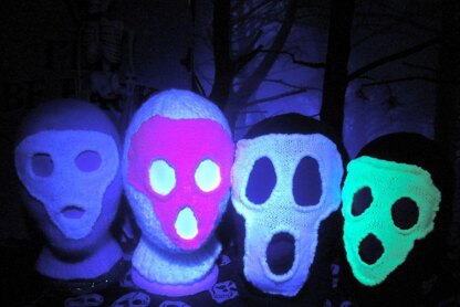 This is my Halloween Scream Balaclava knitting pattern. By day these hats look like any other beanies. When pulled down into a balaclava they become scary. BUT put them under uv lighting and they are absolutely TERRIFYING!!!! Now you can scare all your neighbours to death this Halloween when Trick or Treating. The knitting pattern covers 4 sizes XS,S,M & L so can be made for anyone with a head circumference between 16 - 24 inches. Each hat seems to take on a life of its own as you can see in these pictures. WARNING: Please do not attempt to make this hat if you are of a nervous disposition. If you are still determined to make one you can buy the pattern on Etsy, Ebay or my website www.madmonkeyknits.com Happy Halloween!