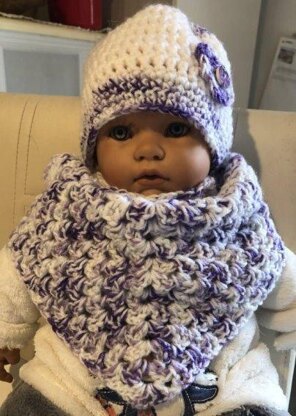 Dieses niedliche Dreieckstuch ist superschnell gehäkel. Es hät Ihr Baby warm und ist zudem sehr schick. In der Beschreibung ist nur das Tuch enthalten. Anleitung für die Mützen folgen in Kürze.