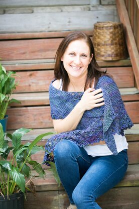 Hana means Spring in Japanese, but this shawl can be a wonderful accent to your wardrobe in all seasons. Hana is an asymmetric triangular shaped shawl knit from side to side. Stripes of garter and simple lace worked on the bias create striking diagonal lines that stand out when worn.
