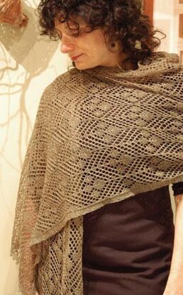 An ethereal delight, this intricately patterned rectangular lace stole features beaded cast on and bind off edges. Recommended beads are size 6/0 glass seed beads, or even better, a novelty bead such as the wavy leaf drop beads shown, daggers, drops, or Japanese megatama beads. Pattern contains 5 pages.