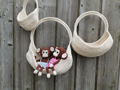 These Hanging Baskets are quick to make and are whimsical containers that will serve as a lovely home décor project! You have to crochet around a metal ring that can be hung up on a knob or a hook. Inside the basket, you can place your cute amigurumi dolls, potted succulent plants, or other trinkets! The baskets are worked seamlessly in one piece, requiring no sewing. This pattern includes 3 sizes, a small, middle and large version so you can make a nice collection of varying sizes.