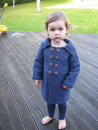 Hanorah is designed to be worn as a coat, while being cozy and comfortable enough to be worn inside. With moss stitch edging and waist band, this coat is perfect to use those special buttons, or try an eclectic mix!
