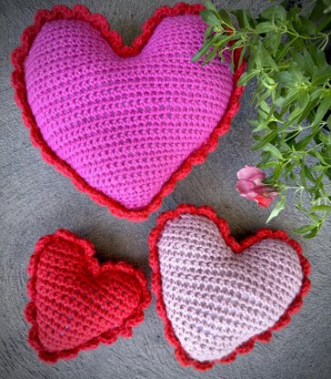 Heart sizes are based on using #3/dk/light worsted/8 ply yarn – with a 3mm/D3 Hook