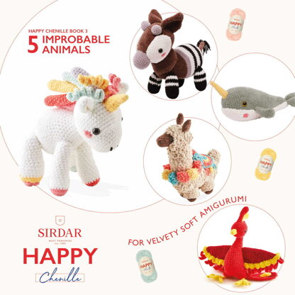 If you do six impossible things before lunchtime, you’ll relish Happy Chenille - 03 - Improbable Animals by Sirdar. This book has five amigurumi des