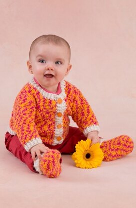 Happy Girl Cardigan and Booties in Red Heart Anne Geddes Baby - LW3426