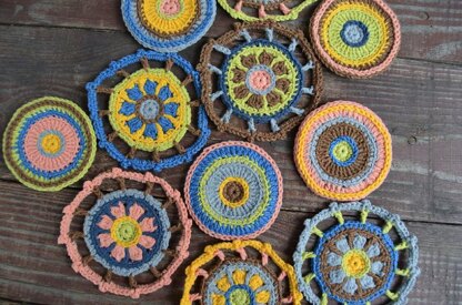 These very easy to crochet “Happy wheels” can be used in many ways. They can become a garland or a nice decoration for your pillow cover, bag, skirt or even curtains!