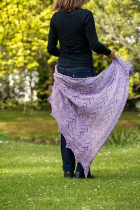A note on size: If you have less yarn than stated, substitute yarn, or are working at a looser gauge, you may have insufficient yarn to make the shawl quite this big. In the directions I have included instructions for making a slightly smaller version by determining how much yarn you have remaining, and if necessary omitting some row repetitions, and working an alternative edge chart.