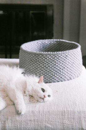 Medium bed measures 19.5” across. Best for pets under 14 pounds. Requires approx. 1050 yards of category 5 yarn.