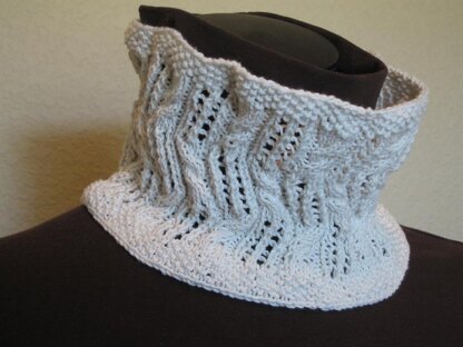 This is a quick knit of tilting ladders and simple cables. It is worked in the round, so no finishing required (other than weaving in beginning and ending ends of yarn). Makes a great gift or make one for yourself!