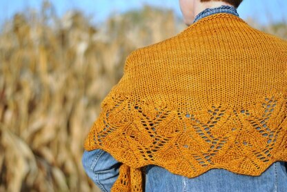 Golden sunlight, golden fields, a slight chill in the air as autumn arrives; all are reflected in Harvest Moon. Worked from the bottom up with a wavy lace edge, Harvest Moon is just what you want to wear when the leaves start to turn.