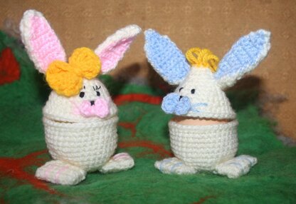 Wenn Sie mittelstarke Wolle für Nadelstärke 3, z.B. Lisa, verwenden, passt ein Hühnerei in Ihr Häschen.