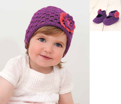 Hat and Ballerinas Bootees in Rico Baby Cotton Soft DK - 168