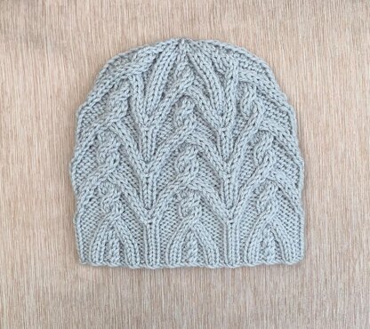 This beautiful hat with cables is knitted in the round and does not have a seam.