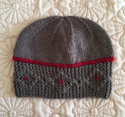 The border of the hat is made sideways, then stitches are picked up and the top is made in the round.