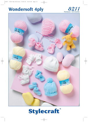 Hats, Bonnet, Mittens and Bootees in Stylecraft Wondersoft 4ply - 8211 - Downloadable PDF