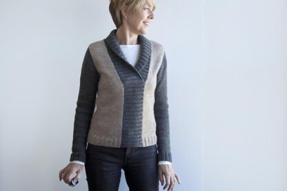 Reintroducing Hattie! – top down this time with sleeves worked in-the-round. Hattie is a fitted, color block (if you choose) pullover with long, straight sleeves, and wide shawl collar. Stitches are picked up along center front and neckline edges for its ribbed front panel and collar. You'll find worsted weight yarn works up quickly for a fun project. Enjoy!