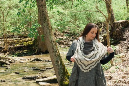 Haverhill is a two-color, top-down, triangular shawl. The upper body of the shawl is garter stitch and the lower body includes lace and bobbles. You can not work the bobbles if you choose.