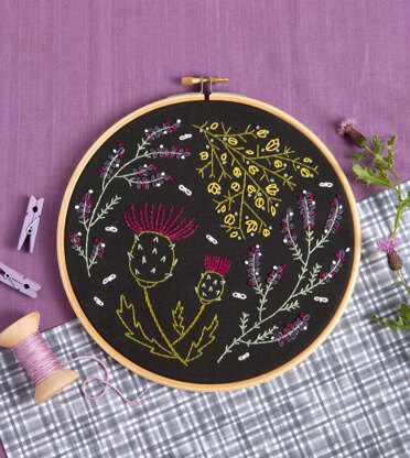 Hawthorn Handmade Highland Heathers Black Printed Embroidery Kit