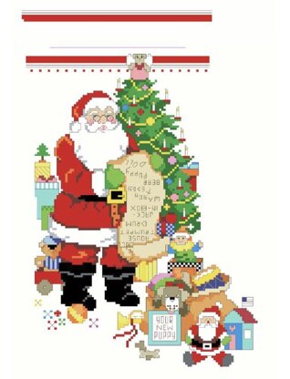 He's making a list and checking it twice. The perfect Santa stocking for the perfect child who has been good. This stocking can be personalized and comes with a coordinating alphabet and finishing instructions to make this the perfect heirloom stocking to come out every holiday season.