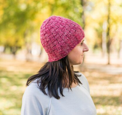 This is a pattern for a textured knitted hat using basketweave stitch with eyelets and easy cables, worked from the bottom up in the round in fingering weight yarn. The hat is created to complement the Heading East shawl for those who would like to make a set and/or have some leftovers, but it is a nice and fun hat all by its own!