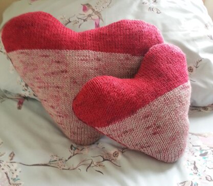 Knitting Pattern for 2 sizes of Heart Shaped Cushions.
