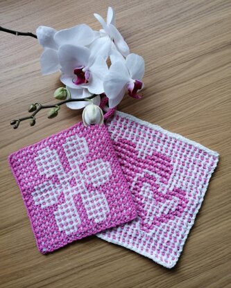 Mosaic colorwork washcloth brightens up your bathing rituals or washing up. It makes a lovely gift which is quick and easy to make and looks beautiful. Use natural plant-based fibre, cotton or linen, for easy care. Gauge is not crucial to this project but will affect the size and the amount of yarn used. Size is adjustable.