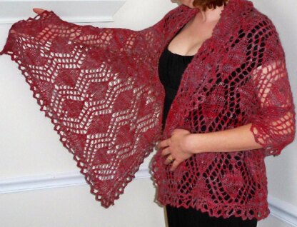 Wrap yourself or someone you love in hearts and diamonds. I made this pattern on Valentine's Day, with a red homespun Angora/Moreno mix.