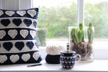 With this pattern for the Hearts cushion cover you can make this stylish cover yourself. A beautiful eye catcher in your interior, a perfect gift for Mother's Day too. Matching the beautiful Bunzlau Castle crockery, it is a lovely item for the kitchen too. The cover measures about 40x40 cm/ 15.5x15.5 inches. It is a wonderful cushion, both to make and keep, and a quick make that's lovely to give.