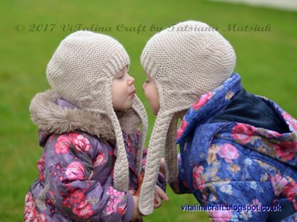 So stylish and pretty in cream colour, this earflap hat is a perfect accessory for your little one. It is designed to keep a little ears warm and cozy during these cold and windy days.  This easy to knit hat is knitted in the round and has no seams. The earflaps are knitted back and forth on needles with pretty cable hearts both sides. The body of hat is knitted with garter stitch and fancy ribbing at front.  Offered in five sizes from baby to adult, the pattern is easy to follow and suitable for advanced beginners. It consists of cable charts, row-by-row instructions and photo.