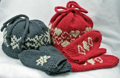 Warm up your little ones with these quick, easy hats and mittens adorned with simple colorwork patterns and topped with two different i-cord options. A great introduction to stranded colorwork or duplicate stitch! Sized for 18 mos-4T+.