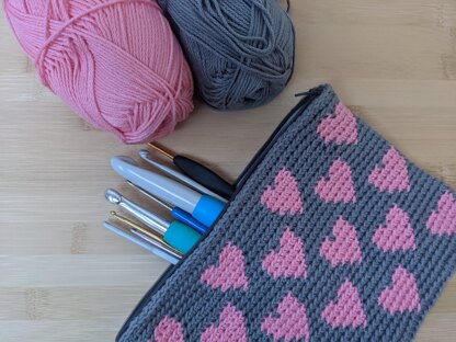The Hearts Zipper Tapestry Bag makes a very pretty accessory case, perfect for storing make-up, jewellery or even crochet hooks! It measures approximately 16cm by 23cm but the pattern includes the full pattern repeat and measurements so you can make this as small or big as you desire! Adding a zipper or a lining is optional but gives your pouch a finished look and it will better protect the items you wish to store in it. The pattern includes instructions for making a lining and adding a zipper by hand, so no sewing machine is needed if you don’t have one.