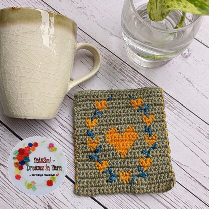 COMPLETED SIZE: approximately 4.2” square Coaster. If yarn used is thicker/thinner, the size may vary.