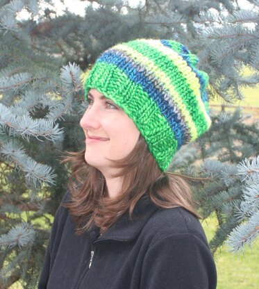 This is designed for super bulky yarn, but you can double bulky, or use 4 strands of worsted or aran yarn.