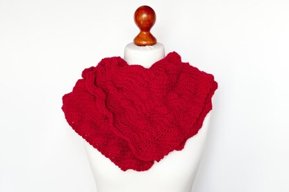 This snuggly shawl is worked in Zitron luv & lee. A ridged ripple pattern gives the shawl a lot of texture. The ripples are shifted such that the shawl is not rectangular but forms a parallelogram. The shawl matches my Heatwave Hat and Mittens.