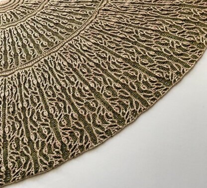 The Hedge Maze shawl features a stunning brioche stitch pattern that mimics the way leaves and branches intertwine as they grow.
