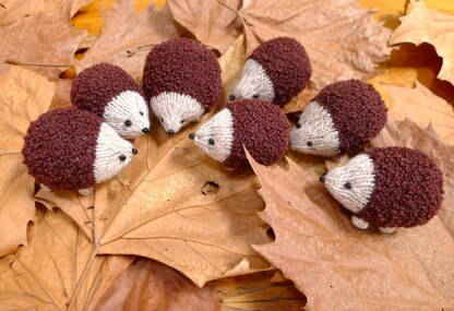 This little family of hedgehogs are quite simple to make, unlike many small toys which can be a bit on the fiddly side. If you are a confident knitter you can vary your yarn and you can obtain a variety of results. By using an eyelash yarn for the body of the hedgehog you will get a much spikier version and you can stiffen the quills even further by giving the fur a bit of a spray with some strong hair spray. I have used a boucle style yarn and one ball will give you many, many little animals. If you can’t find a boucle yarn just look for an 8 ply in a brown variegated colour which is a bit uneven in texture. Any oatmeal shade in 4 ply will be fine for the face.