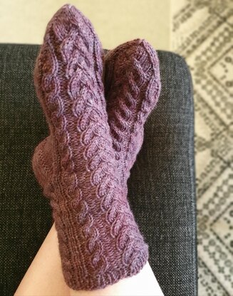 Cable knit socks knit with 1 skein of yarn. Hope you enjoy!