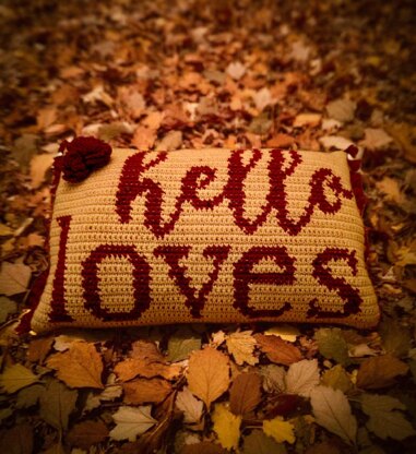 I commissioned Emily at TLB Patterns to design this cushion as a memorial to our friend Amanda Bloom who often opened her much loved video's with the words 'Hello Loves'. Amanda died in June 2025 and we miss her very much. I created a kit to make this cushion but here you are purchasing the pattern only. I used an Aran weigh yarn but you can use whatever yarn and corresponding hook you wish. There are still some kits available, so if you would like one, please contact me about those. Wait to buy your cushion until you have finished crocheting to cover to be sure you buy the right size. I am happy to answer any questions. With love Julie x