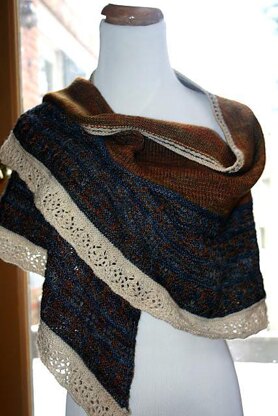 The shawl is then finished with a petite 2 color edging at the top and the entire pattern has a bit of a steampunk vibe going on. It is wide, capacious, and perfect for throwing on next time you go into battle - lol...
