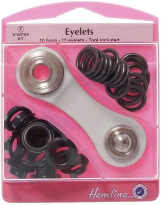 Hemline Eyelets Starter Kit, 10.5mm x 15 sets - Black