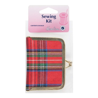 Ideal little kit for travelling. Includes scissors, safety pins, buttons, assorted thread, needles and needle threader, all contained in an attractive fabric purse.