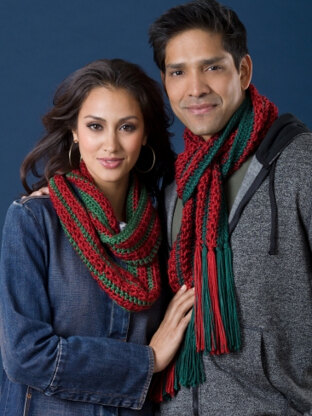Her Infinity and His Fringed Christmas Cactus Scarves in Caron Simply Soft - Downloadable PDF