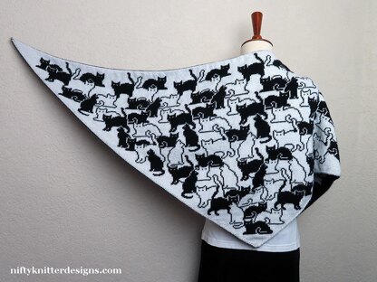 Any cat owner knows that cats have minds of their own. The Herding Cats Shawl shows what happens if you try to herd cats… they just do their own thing. Cute cats cover both sides of this gorgeous reversible shawl.
