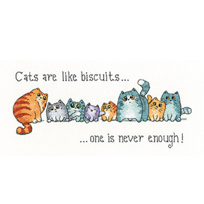 This fun Cats and Biscuits design is the first of a new range from Heritage featuring images and words. Kit contains chart and instructions, needle, 14 count Aida fabric and presorted DMC stranded cotton threads on a loaded thread organiser.