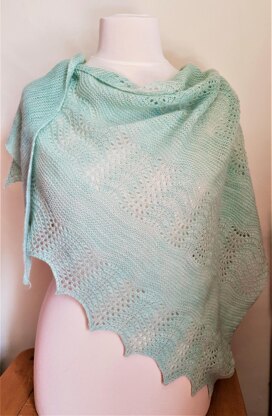 The size of the shawl can be adjusted either by casting off after two repeats of the pattern rows, or by reducing the length of the garter stitch section.