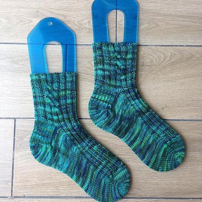 The Hermes Socks is an easy ribbed sock pattern with a delicate cable detail, worked toe-up, with gusset and slipped stitch heel for better fitting. Instructions are written for magic loop method, the cable instructions are charted and written for your convenience.